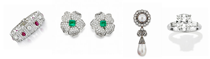 A curated selection of signed pieces from top luxury brands and historic jewelry from Georgian to Art Deco eras, including loose diamonds and gemstones.